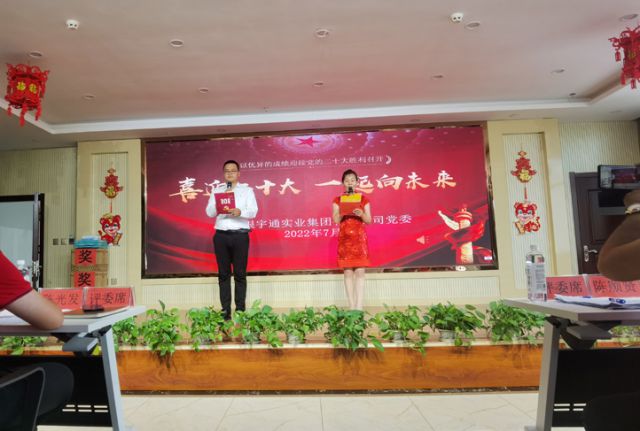 7月7日下午,为迎接党的二十大,庆祝中国共产党成立101周年,团结引领广大职工坚定跟党走,建功新时代。甘肃银宇通实业集团有限公司党委“喜迎二十大•一起向未来”读书朗诵比赛在集团办公大楼会议中心举行。集团公司党委书记、董事长陈顺贤在本次活动中致辞。他说,我们要把演讲的精彩转化为岗位奉献的具体实践,永远跟党走,坚定信心,与企业同舟共济,一起向未来!比赛现场,选手们结合自己工作实际,用质朴的语言,激情的