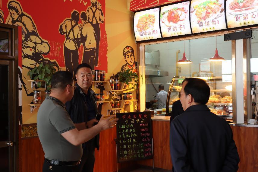 调研组一行来到了农连农餐饮公司总店,参观了卤制品加工车间,陈顺贤董事长与调研组亲切交流,详细介绍了餐饮公司打造中央厨房的规划和进程。公司规划在2023年6月9日前,于兰州新区、皋兰县、白银区三个区域开设10家公司直属门店、20家加盟店,随后进军兰州市场。卤制品加工车间的装修正在如火如荼进行中,面积约1000平米,打造设备现代化、效率化、高效化,卤制标准化、流程化为一体的新型卤制品加工基地。调研组一行就中央厨房的组建和规划,给予了高度的赞赏;称老汤卤肉卤制品为“白银种类最为齐全,味道最为独特的卤猪肉”。
