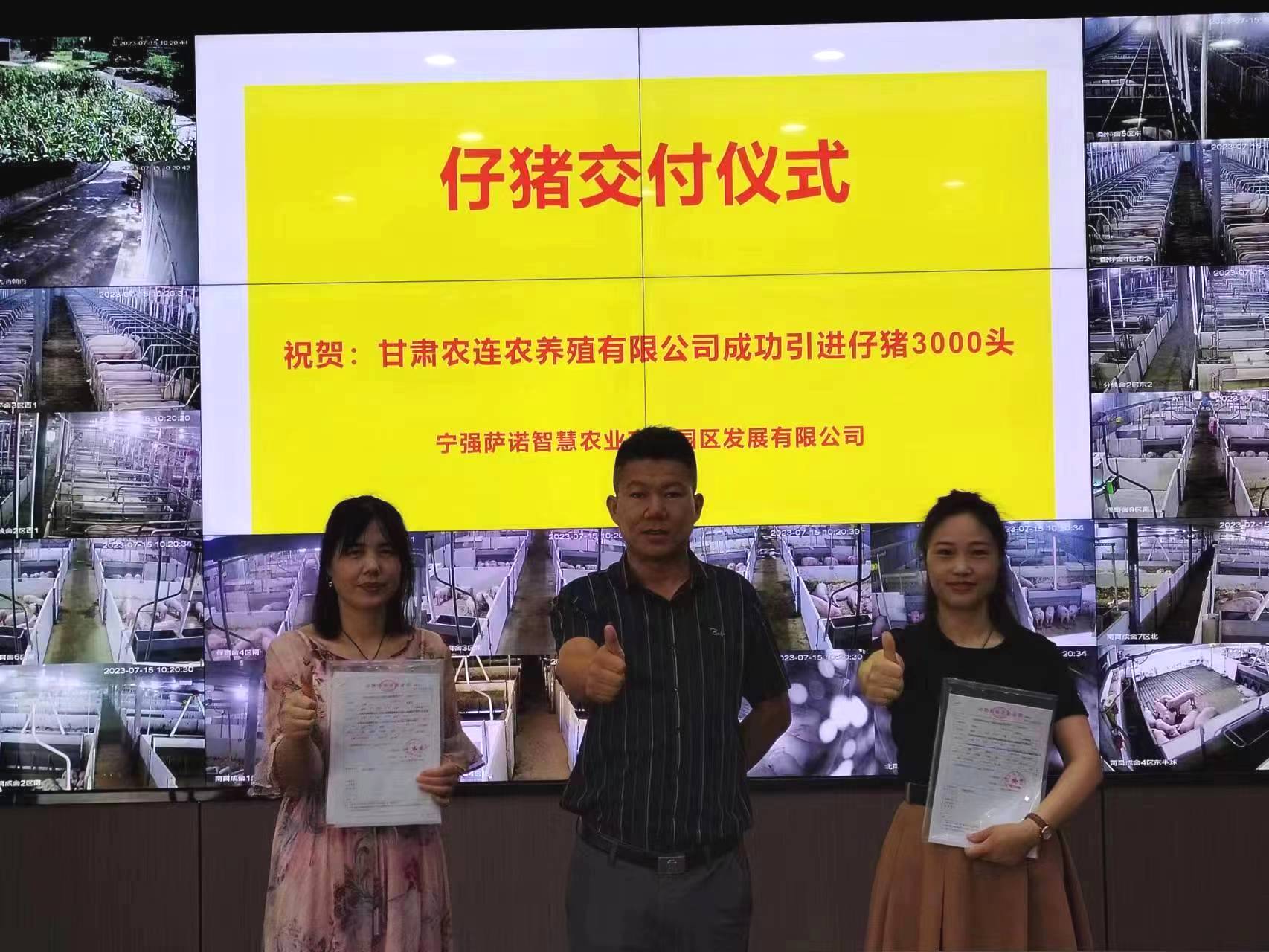 甘肃农连农养殖有限公司与宁强萨诺智慧农业产业园发展有限公司7月15日签订3000头仔猪购销合同;8月6日,第二批1500头优质仔猪入栏。两辆大型牲畜专业运输车,带着优质仔猪从陕西省宁强县萨诺智慧农业产业园区出发,于8月6日上午,驶入皋兰县石洞镇涧沟村西湾甘肃农连农养殖基地,工作人员一路精心呵护,将可爱的“猪宝宝”送进新“家”。据悉,第一批1500头仔猪长势良好,预计11月底出栏。甘肃农连农养殖有限