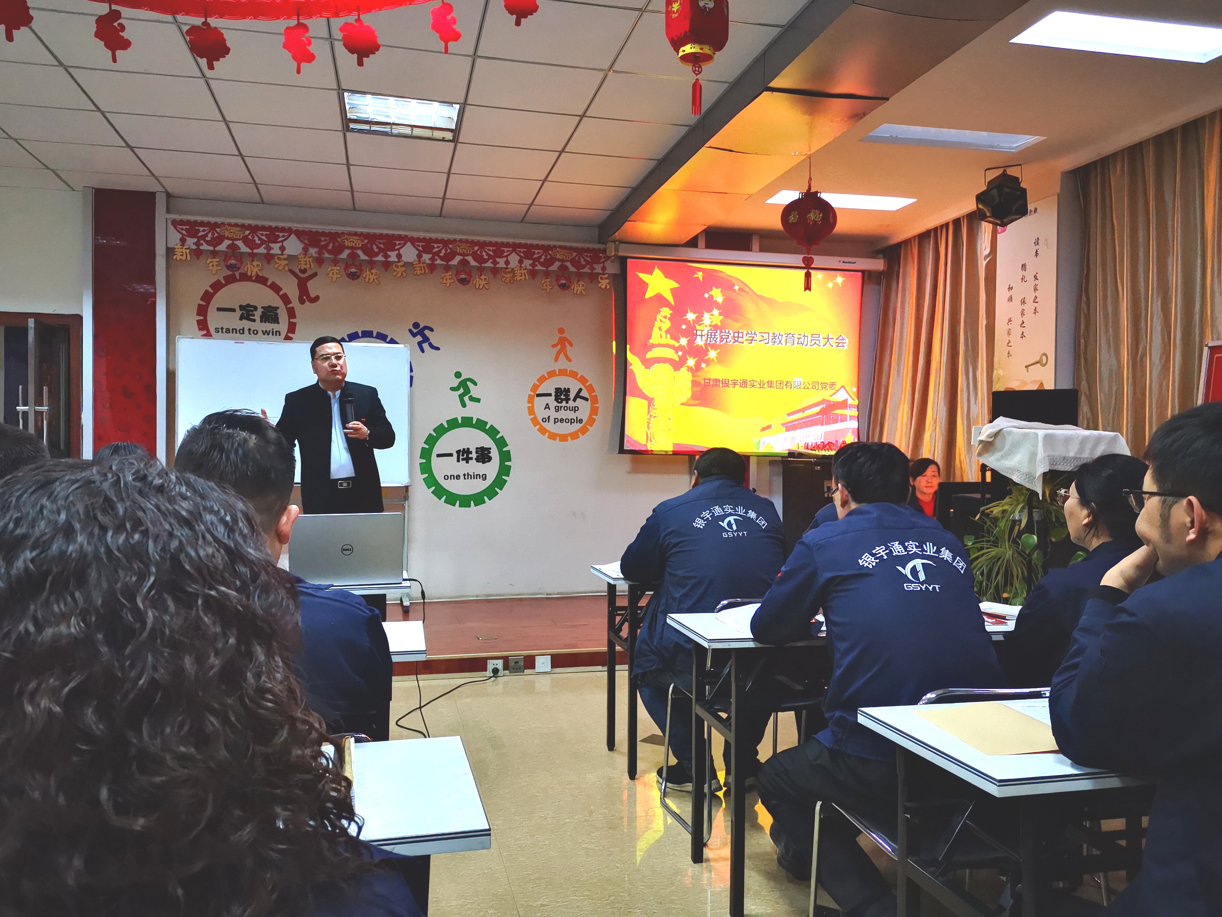 2020年11月25日下午,甘肃银宇通实业集团有限公司周三学习在集团公司四楼学习培训中心进行。集团公司党总支书记、董事长陈顺贤授课。 陈顺贤董事长借鉴全国优秀民营企业实例,主要分享了行业的选择与变革、企业的领先思维、非公企业党建工作的重要性,探讨了未来企业发展的趋势以及核心要素,并就集团公司目前存在的问题以及今后努力的方向做了讲解。他强调:全体员工要有忧患意识,要在工作中创新突破,提升自己的业务水